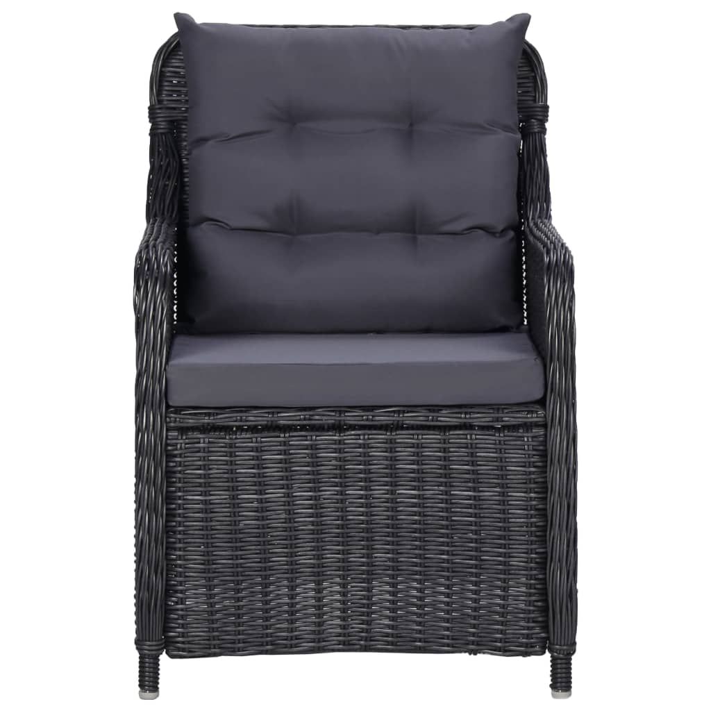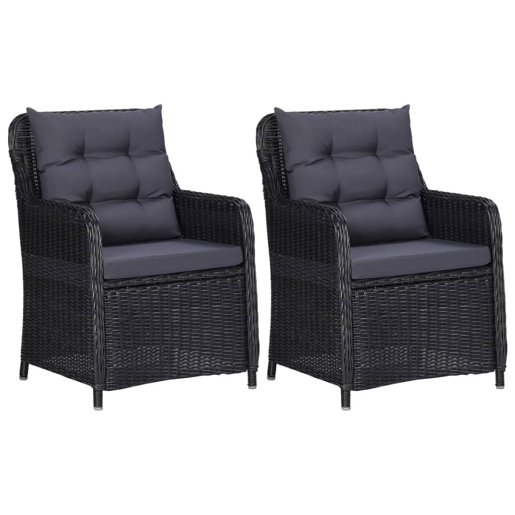 Add a touch of modern style to your outdoor space with this poly rattan chair set. These chairs are ideal for complementing an outdoor dining set or standing out on their own. Constructed with a robust steel frame wrapped in hand-woven PE rattan, the chairs are designed to be rust and mildew-proof, ensuring long-lasting quality and comfort. The ergonomic curved backrest provides enhanced comfort, and the set includes plush, thickly-padded cushions and back pillows for maximum relaxation. The low-maintenance polyester cushion covers are removable and washable, thanks to the convenient zips. To maintain the chairs' condition, covering them during adverse weather is recommended.