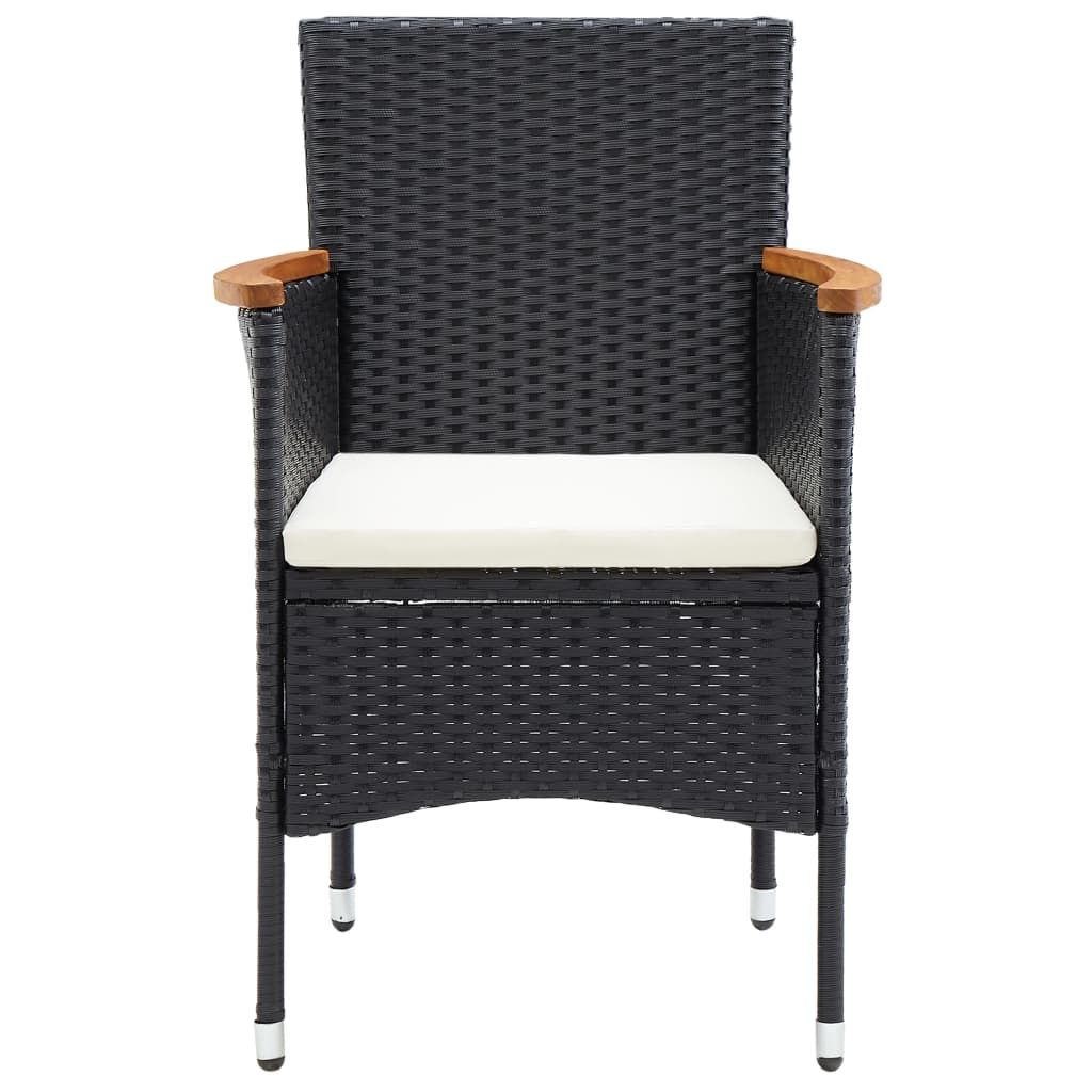 Elevate your outdoor space with this contemporary garden chair set. Perfect for gardens, balconies, or patios, these chairs feature a modern design that enhances any setting. Constructed with a sturdy steel frame wrapped in weather-resistant PE rattan, the chairs are rust and mildew proof, ensuring long-lasting durability. The design includes ergonomic curved backrests and armrests for added comfort. The armrests are adorned with solid acacia wood, finished with natural oil for a touch of rustic charm. Thickly padded cushions are included for extra comfort during extended sitting.