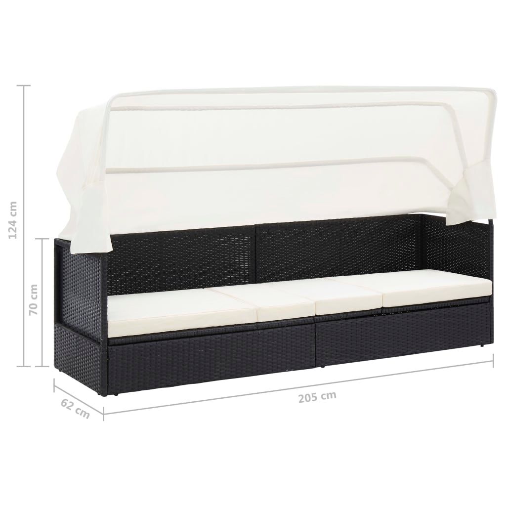 Our PE rattan garden sofa is an ideal hideaway for relaxing and enjoying your leisure time near the swimming pool, in your garden, or on your patio. With this elegant sun lounger, you can enhance your outdoor ambiance and reflect your trendy lifestyle. The sunbed features a powder-coated steel frame covered in weather-resistant and easy-to-clean PE rattan. It includes a thick, removable seat cushion for added comfort. The design includes a foldable roof, allowing you to enjoy sunbathing without worrying about glare. Note: We recommend covering the sofa during rain, snow, and frost to ensure its longevity.