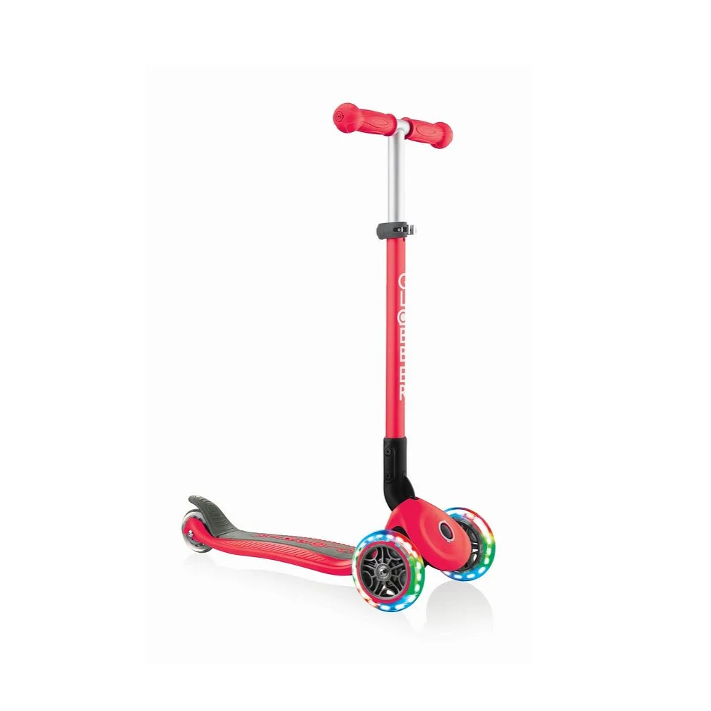 Globber - Primo Foldable Kids Scooter with LED Lights - Anti-Slip, Adjustable Height - Red