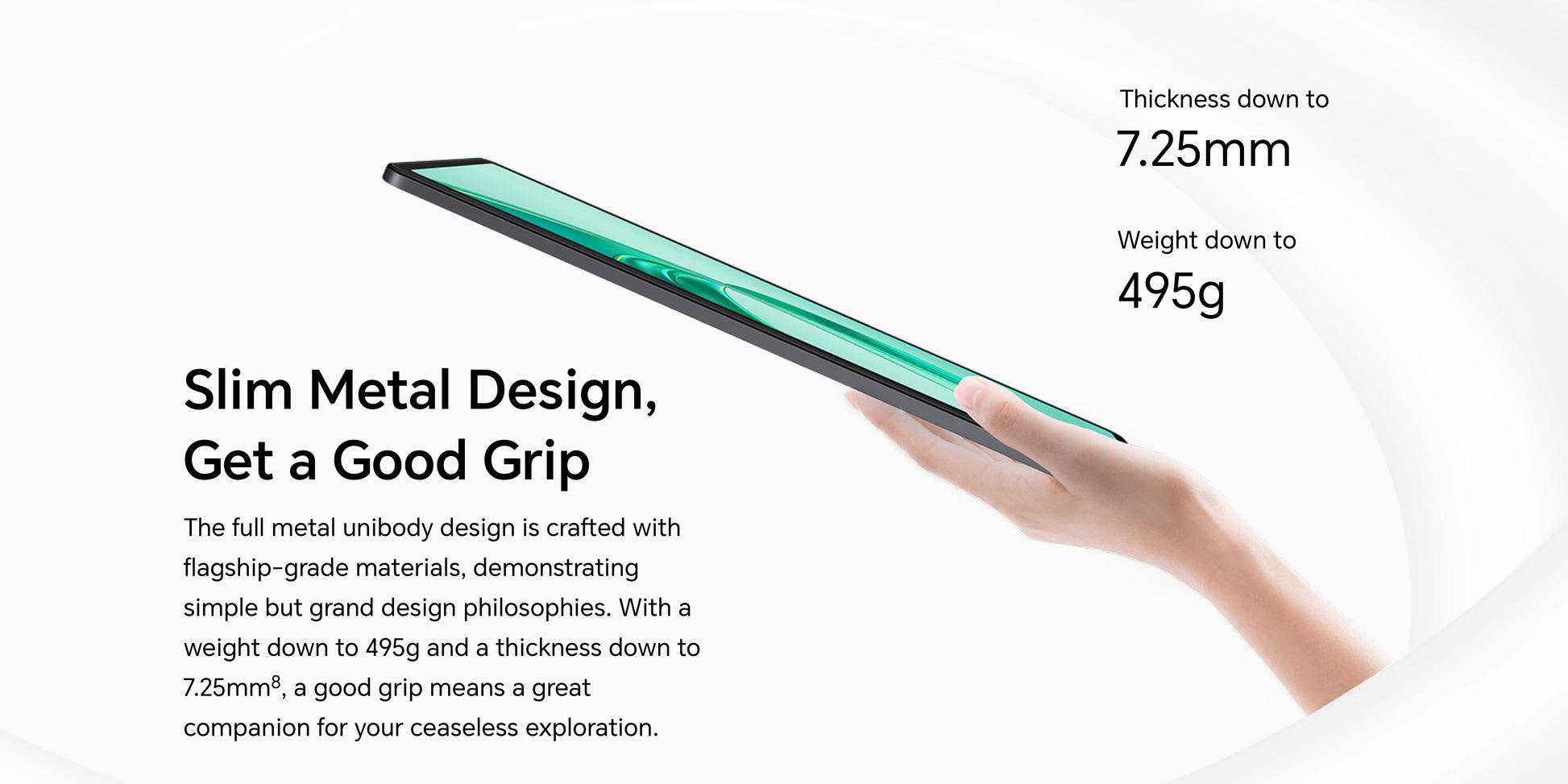 Premium build quality - Crafted with a sleek aluminum frame and back, the honor pad x8a combines durability with a lightweight design, weighing only 495g, making it perfect for on-the-go use