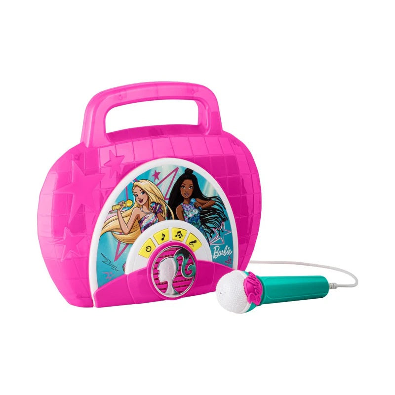 The all-newBarbie by Mattel Sing-Along Boombox is here. Sing your heart out with the Flashy microphone. Or sing along to your favorite songs. Become the star in your own performance. Put on a show, throw a concert, and have fun singing with your very own real working microphone. This Boombox is designed with kids in mind to be lightweight, easy to use, durable, and portable.