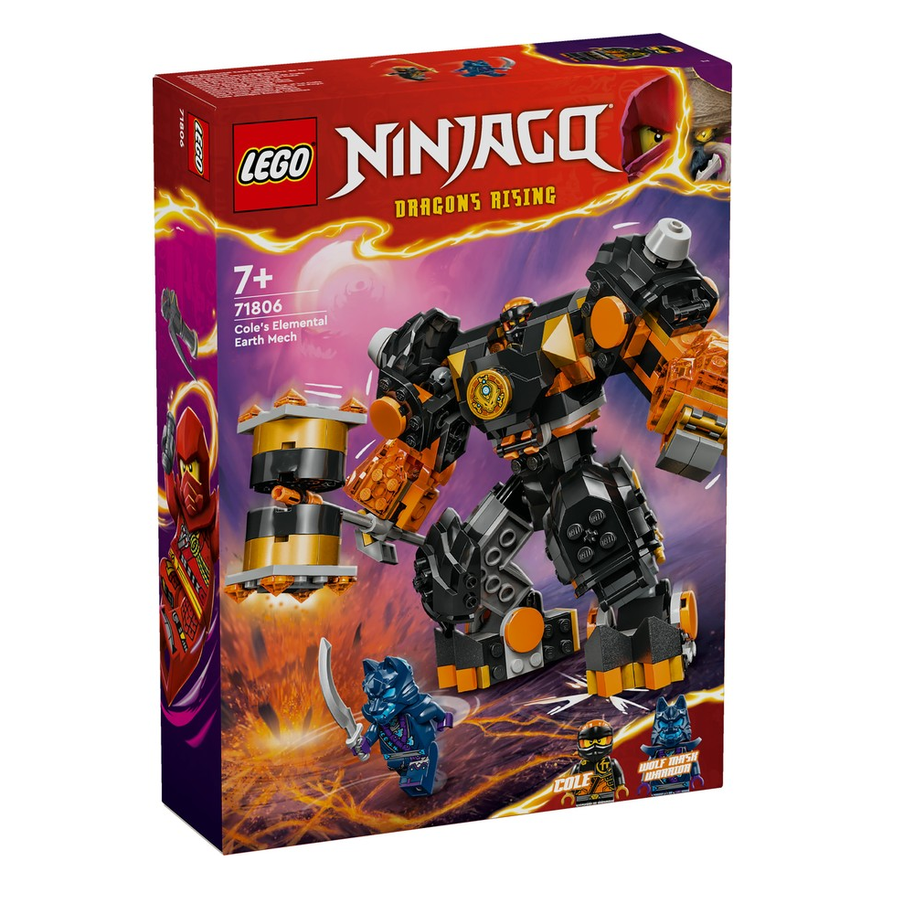 Kids aged 7+ can recreate stories from season 2 of the NINJAGO Dragons Rising TV show with the Cole’s Elemental Earth Mech (71806) adventure toy. The cool mech features posable arms and legs that can be tilted and twisted into dramatic battle stances, Cole’s heavy armor, a large hammer and a cockpit to place a minifigure inside.