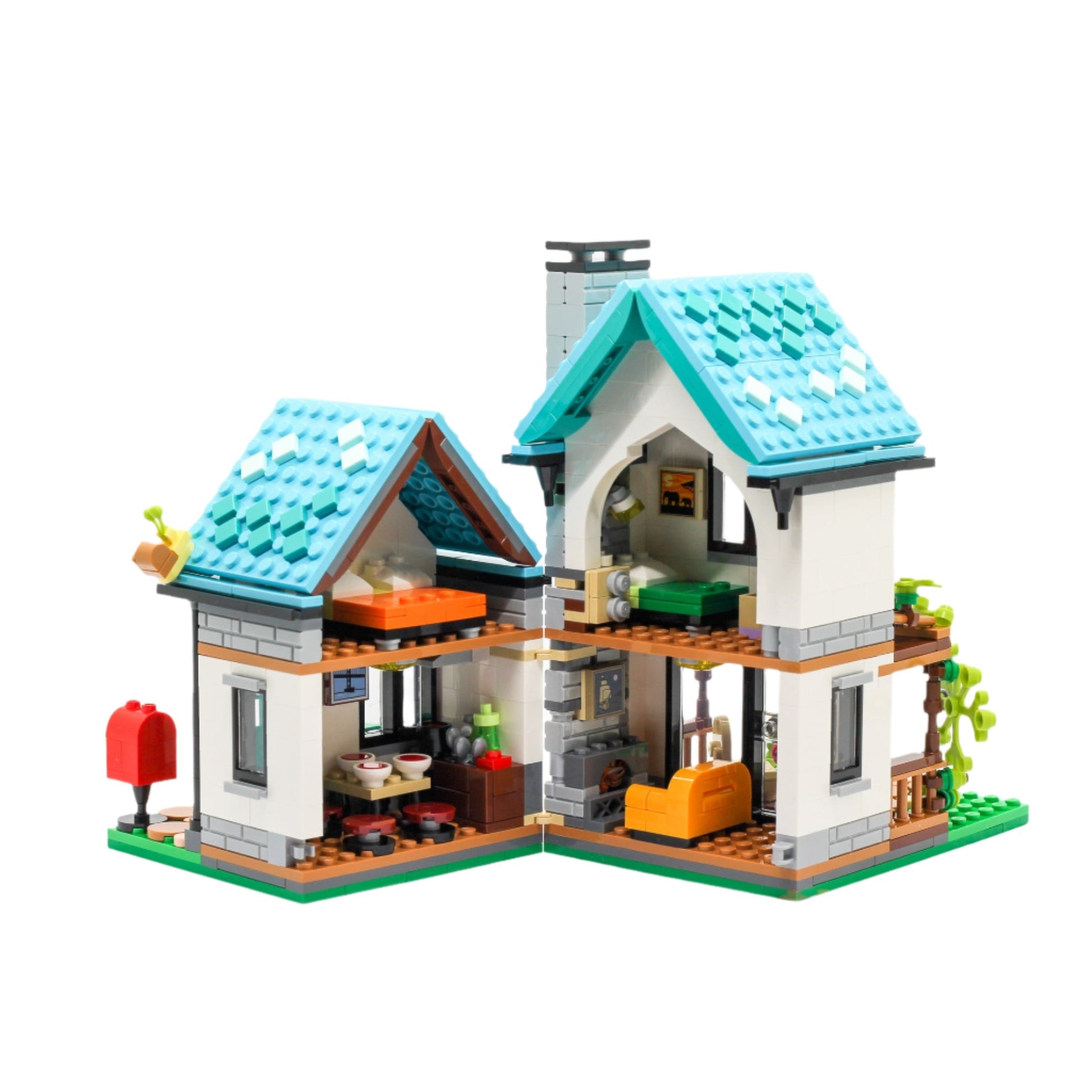 The Cosy House Set features a charming model of a cozy, lived-in home, complete with detailed interior and exterior elements. This set includes mini-figures of family members and various accessories for creating a warm and inviting home environment. Builders can enjoy assembling and decorating their own cozy house. Ideal for fans of home life and miniature details, this set offers a delightful and homely building experience.
