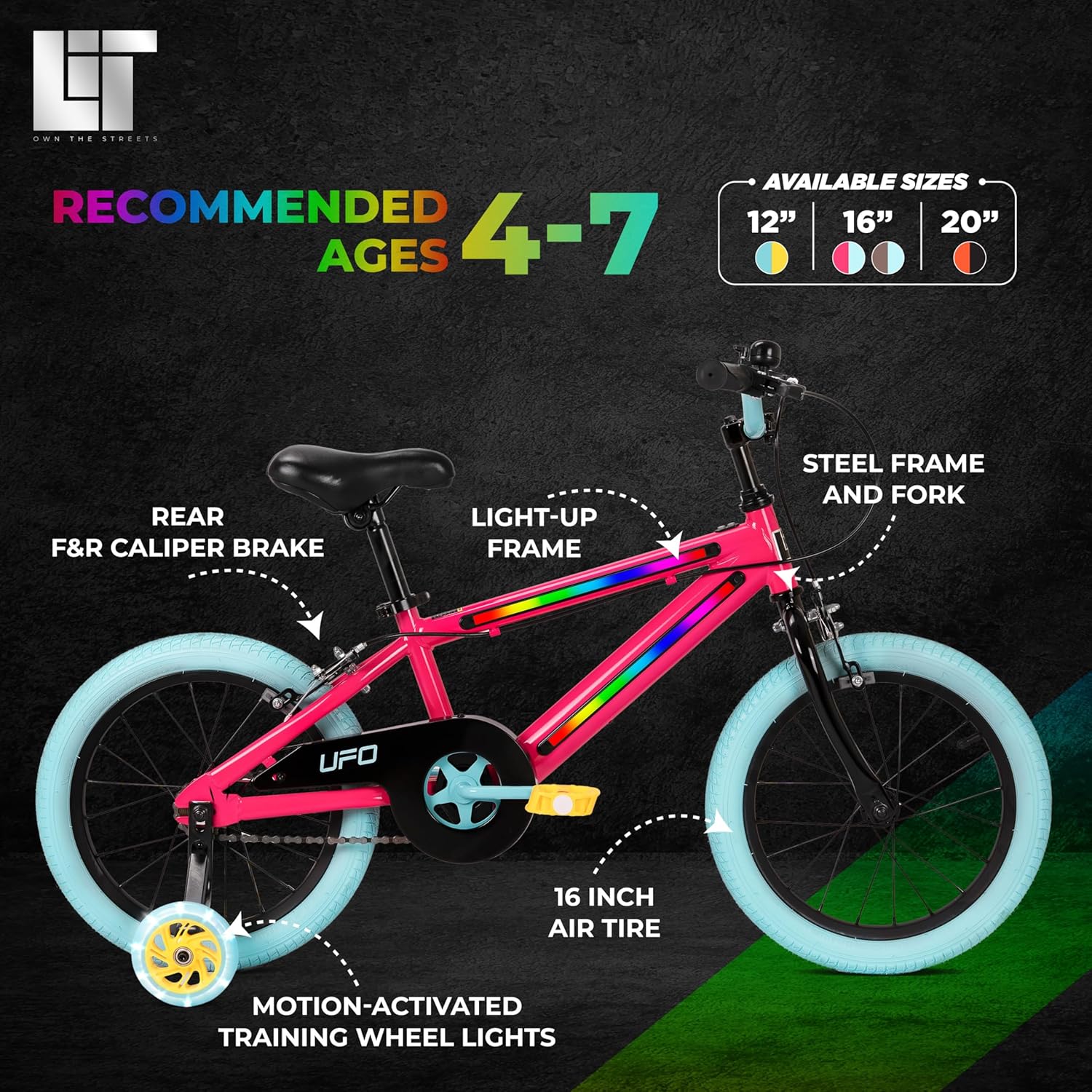 • The Thrill of the Ride: Outfit your kid with a bicycle that exhilarates! Flashy LED lighting gives this bike extra street cred, drawing all eyes and attention! Little kids love the dancing lights and big kids love the flashy coolness factor!