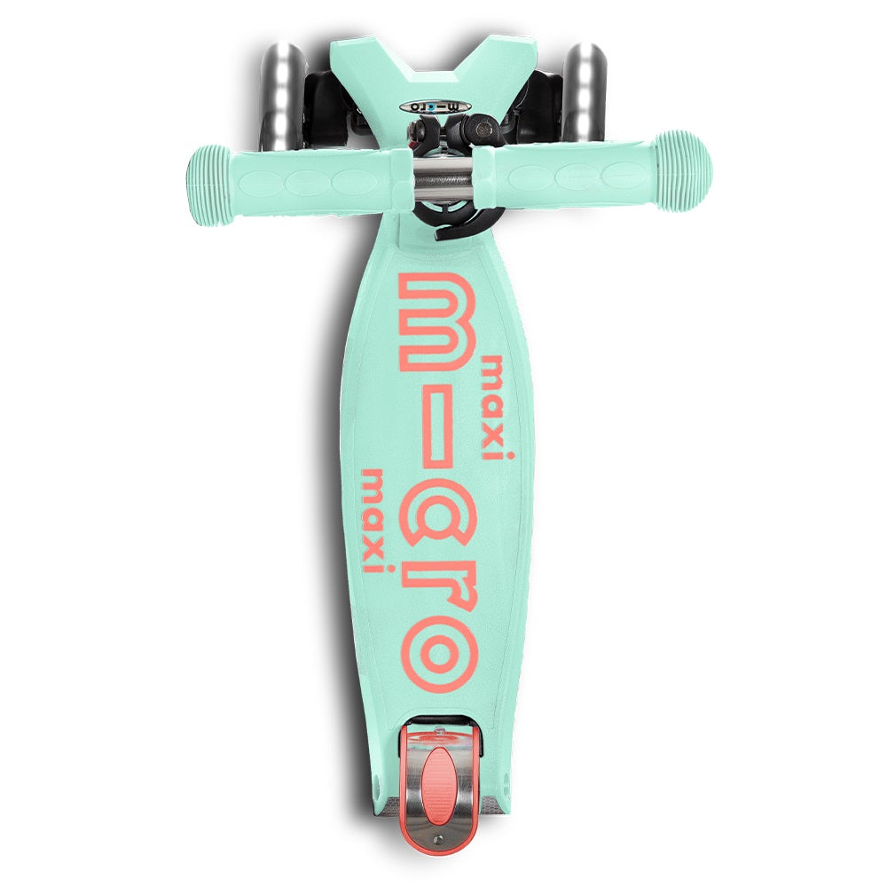 Deluxe LED edition. This Micro Scooter glows with motion-powered LED wheels generated through dynamo mechanics. The wheel’s dazzling illumination not only makes riding your scooter more fun, it also enhances your visibility in the dark. Further outstanding features : Maxi Micro LED is cast in high-quality clear 120 mm Polyurethane (PU) for that super smooth, soft  Micro Scooter ride you are used to. No batteries are required due to its inductive charging method. ABEC 9 bearings guarantee the greatest precision and durability.