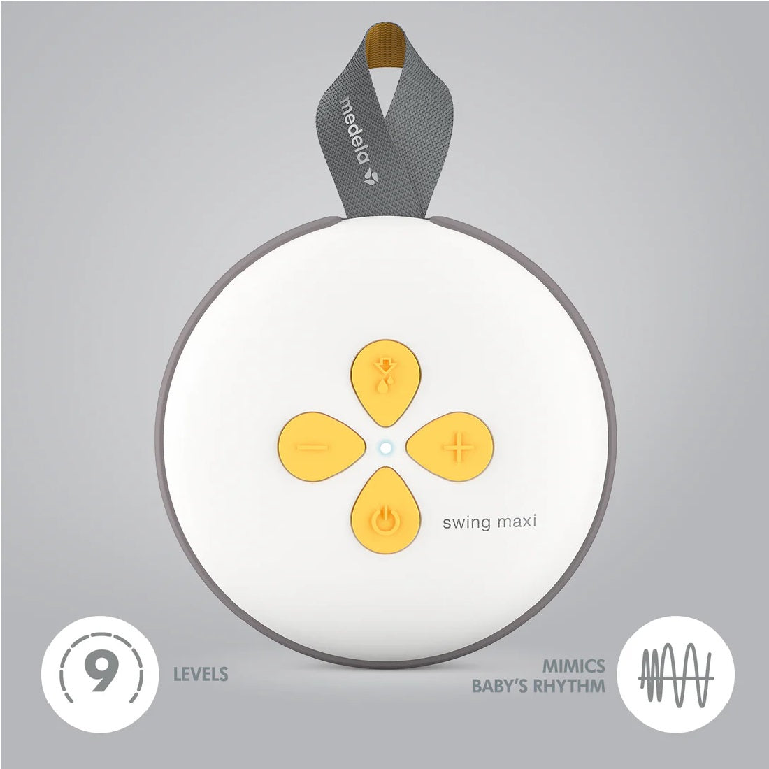 The new Medela Swing Maxi is a compact, easy-to-use double electric breast pump designed to fit seamlessly into your lifestyle and express more milk in less time, whenever and wherever you are. With a built-in rechargeable battery that lasts for up to six pumping sessions when fully charged and a cutting-edge USB type C adaptor for quick charging, you’ll never be without power. Swing Maxi™ also offers intuitive, and hassle-free pumping with Bluetooth technology that lets you connect to the Medela Family app for pump session tracking, virtual milk storage, and nine pre-programmed settings that you can choose and control with four easy-to-use buttons. With fewer parts cleaning your pump is a breeze. Medela's 2-Phase Expression® technology mimics this natural sucking rhythm – fast to stimulate milk flow, then slower to provide optimal milk flow. More comfortable pumping with the PersonalFit Flex™ breast shield. Includes two sizes of breast shields in 21 mm and 24 mm sizes with 105-degree opening angle, soft rim, and oval shape that puts less pressure on your milk ducts than traditional breast shields for a more effective and comfortable pumping experience. More comfort for you, with up to 11.8% more milk for your baby – clinically proven.
