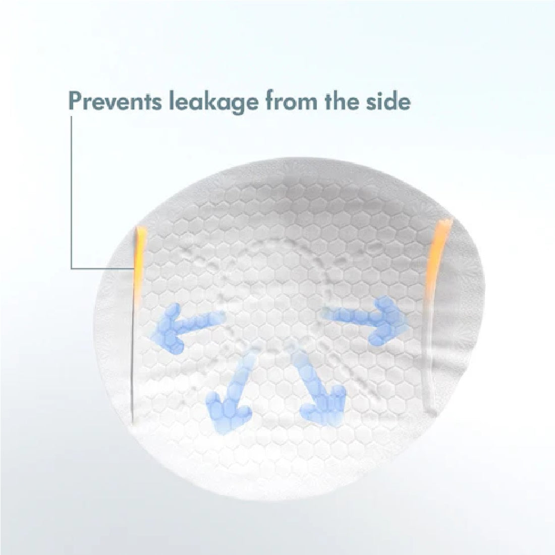 Medela's Safe & Dry Disposable Nursing Pads are specifically designed for mothers who experience low to moderate breast milk leakage. Engineered with soft, non-woven material and a honeycomb design for maximized comfort, these disposable nursing pads have been dermatologically tested and are both hypoallergenic and extra-gentle sensitive skin. Though these Medela nursing pads are ultra-thin and measure less than 2mm thick, five layers of protection, an additional side leak guard, and an absorbent polymer core work together to evenly lock in and wick away moisture - keeping your skin, clothing, and sheets protected and dry. An innovative oval shape is uniquely contoured for a natural-feeling fit that covers a large area beneath your nipple and is shaped to fit your breast. These pads arrive individually-wrapped for hygiene and on-the-go convenience, so you can keep them in your purse, pump bag, or backpack and ready for use whenever you need them - whether at home, at work, or while away from your baby.