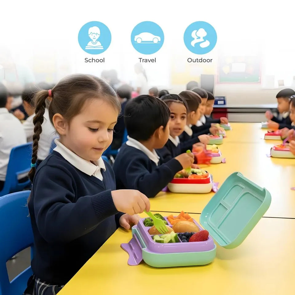 Happy Bellies, Happy Kiddos! Snack Time Just Got Cuter (and Smarter)! Send your little explorer off to preschool with the cutest, most practical lunch box around! Designed with fun prints and built for tiny hands, this lightweight lunch box with handle makes carrying lunch feel like an adventure. Whether it's for fresh snacks, warm meals, or both - this box keeps everything neatly packed in separate food compartments and perfectly fresh until it's time to munch! Whether it's for school, daycare, Playtime, Trips or on-the-go fun, this durable, sturdy lunch box is the perfect pick. Built to last, made to love, and designed for everyday giggles and growing appetites.