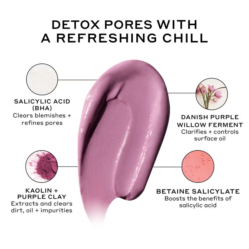 Infused with purple kaolin clay, Danish purple willow ferment and salicylic acid, this clarifying formula helps minimise the appearance of pores, refine texture, balance excess oils and reveal a smoother-looking complexion overall. Lightweight and still nourishing, this must-have mask dries down to a marbled finish that washes off with ease.