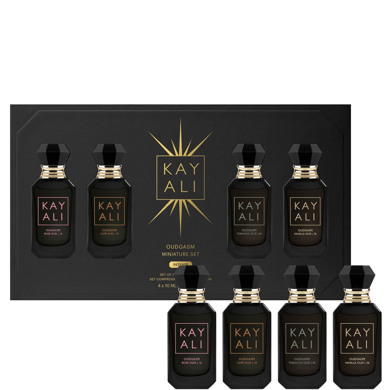Crafted with passion and inspired by Mona Kattan’s intense love for oud, experience KAYALI’s Oudgasm Collection in this deluxe miniature set! This set celebrates the many facets of one of perfume’s most precious and opulent ingredients. These unisex scents were designed to magnify the beauty of oud and explore the infinite universe of layering possibilities.