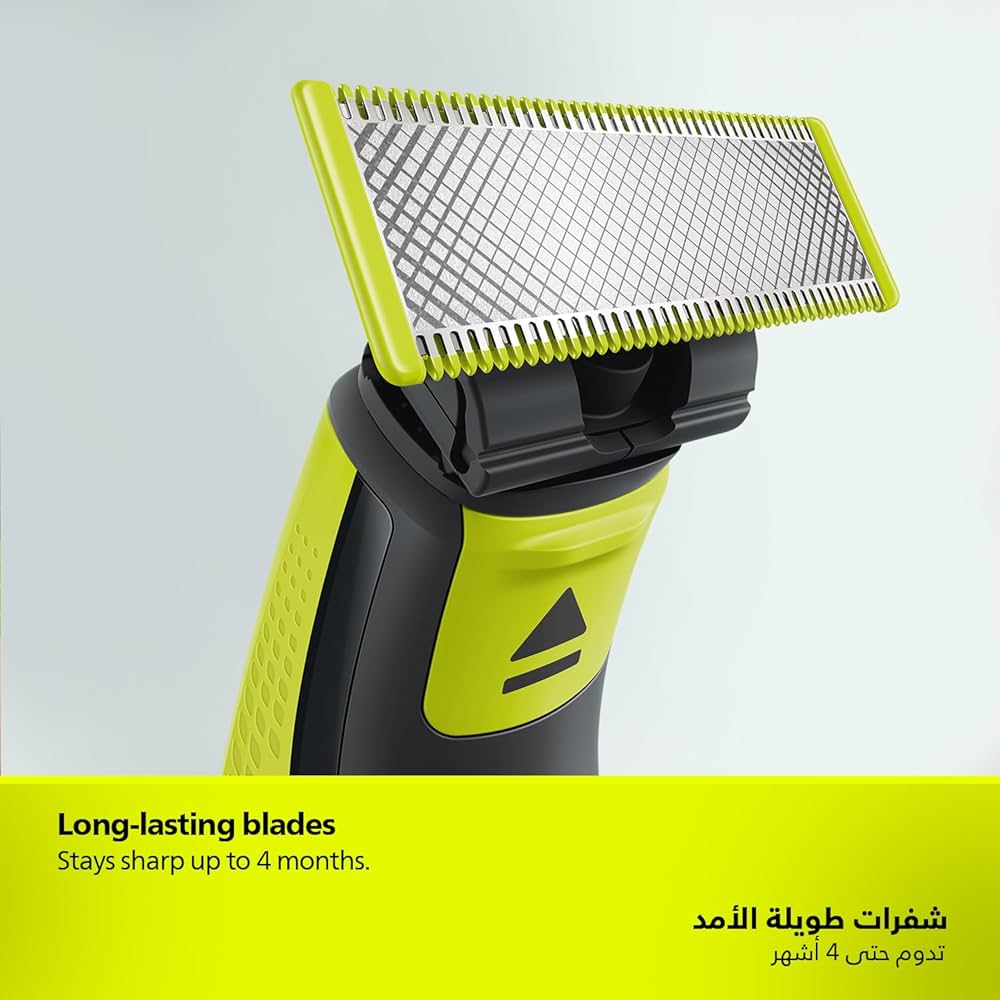 The Philips OneBlade is a revolutionary new hybrid styler that can trim, shave and create clean lines and edges, on any length of hair. Its dual protection system a glide coating combined with rounded tips makes shaving easier and comfortable. Its shaving technology features a fast-moving cutter which powers through any length of hair.