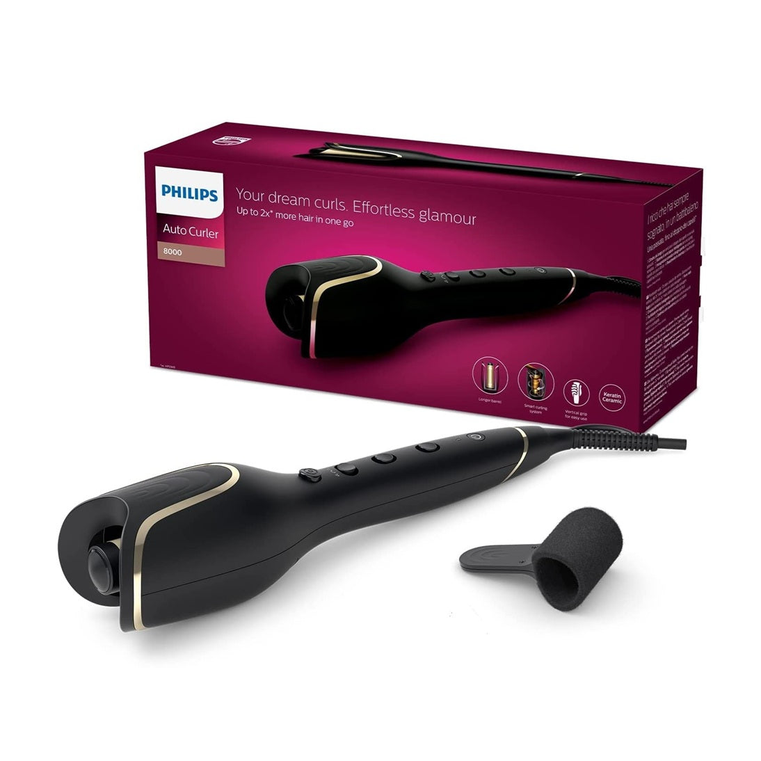 The Philips stylecare prestige auto curler automatically makes your dream curls an effortless reality with its innovative smart curling system. Dream curls transformation with 2x more hair in one go. Enjoy ultimate styling experience with our smart curling system. The innovative system is a great package of many upgraded features. Fabulous, lasting curls are created at a touch of a button with two auto-rotating smart curl guards.