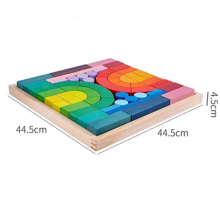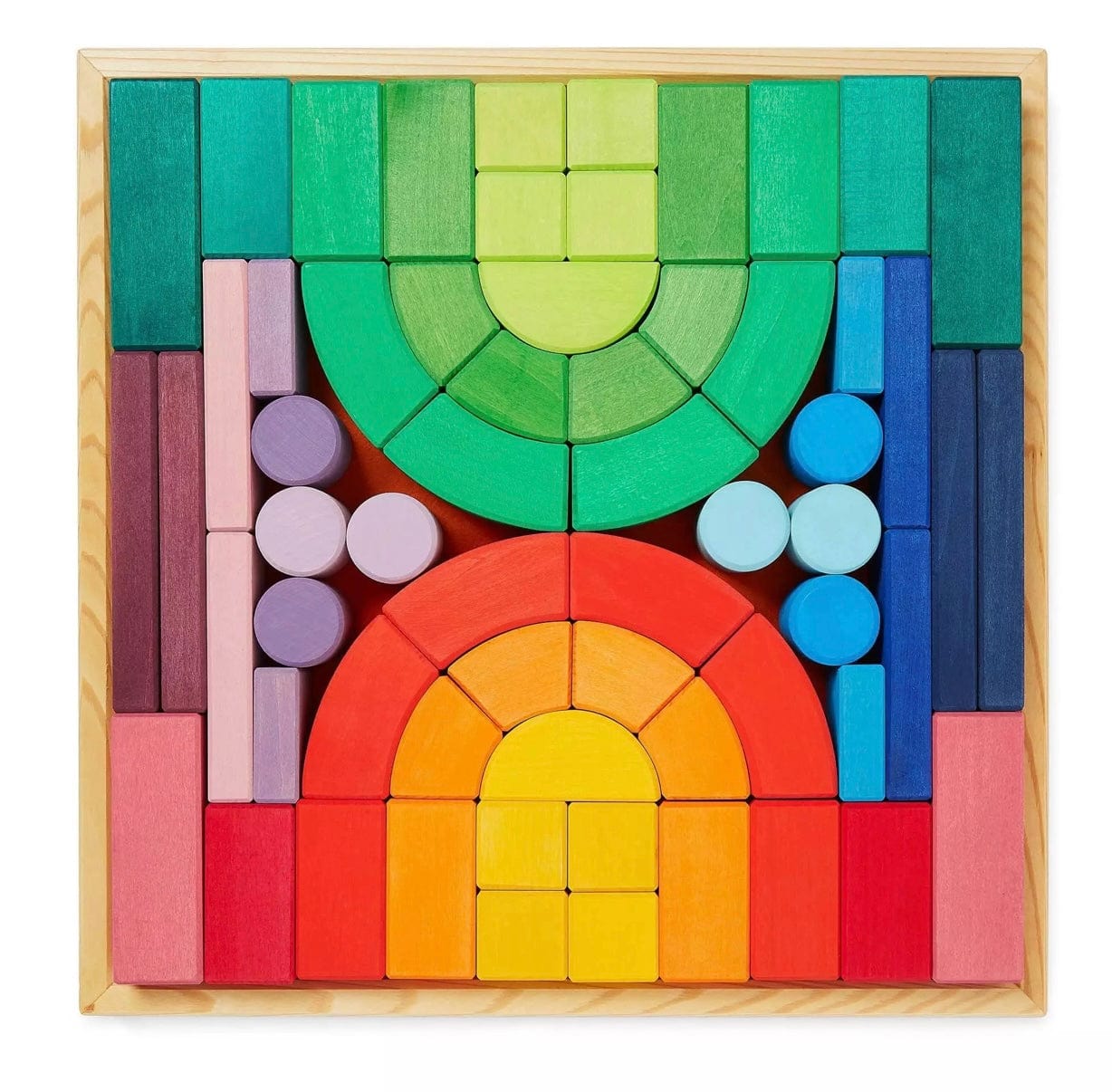 This beautiful large Arches Building set makes a perfect addition to spark your child's imagination and construction play. It also helps develop their fine motor skills, strength, grip, coordination, sorting, and colours matching. Its safe non-toxic rainbow paint stains gives it a beautiful finish and shows the beauty of wood underneath. It's a great open-ended toy that can be matched with other items from our collection to make the perfect scene out of kids' imagination.