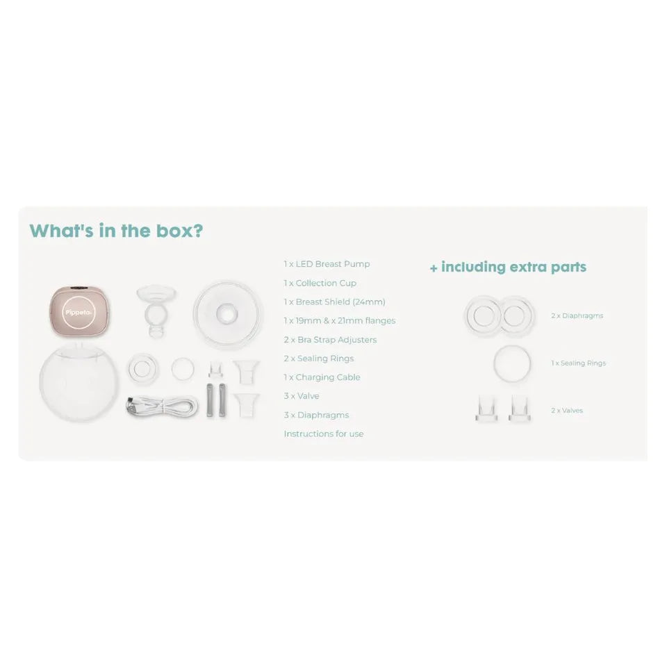 EveryMotherwants her hands free for extra cuddles.Here at Pippeta, we know that mums always have plenty to do, and sitting down to express milk isn't always convenient. That's why our Pippeta pump makes it possible to pumpwhile on the go.Being small and lightweight this pump can be worn inside your nursing bra, with no tubes or wires - it's truly hands free! With a soft silicone cup that fits snug around your breast, the Pippeta pump makes the journey of breastfeeding much easier. Simply remove the cup from the pump and empty into your baby bottles or freezing bags. Quiet, comfortable, easy to clean and easy to assemble. Pippeta pump takes away the fuss! Our original pump is our most popular model, and is our entry price point pump, made affordable to all mums. Our original pump comes with 4 modes (expression, massage, lactation and automatic) as well as 12 suction levels. We are the only breast pump brand to include 3 flange sizes within the box - 24mm, 21mm and 19mm. We also include 2 spare valves and 2 spare diaphragms in the box. The shield/flanges on our breast pumps are made from silicone compared to plastic on other brands.