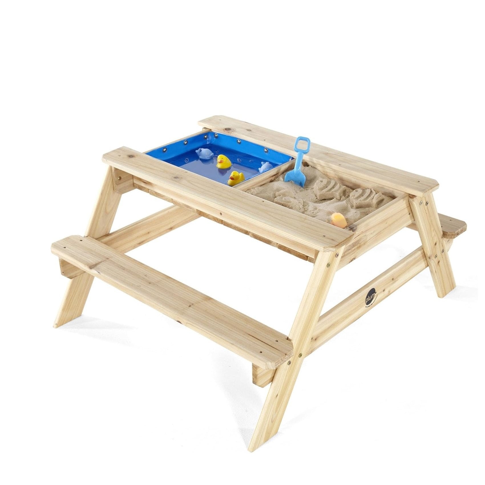 The Plum Surfside Sand and Water Table is ideal for little ones to enjoy sun, sea and sand! The versatile wooden table can be used as a picnic table in the garden for outdoor eating or for drawing and playing games. Lift up the centre wooden panel to find a sand pit and water compartment neatly contained within the base of the table - which will entertain your children for hours! Let their creativity run wild, digging, building, splashing and playing in the sand and water. The Surfside table is made from premium FSC certified timber which is strong and sturdy, designed to last for years to come.