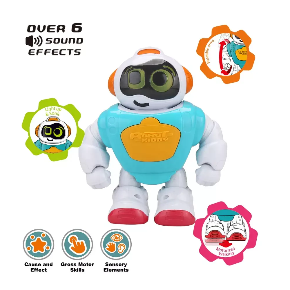 Introducing our innovative and interactive B/O Pre-School Walking Robot with Light & Sound! Designed specifically for your little ones, this walking robot is sure to captivate and engage their curious minds.
