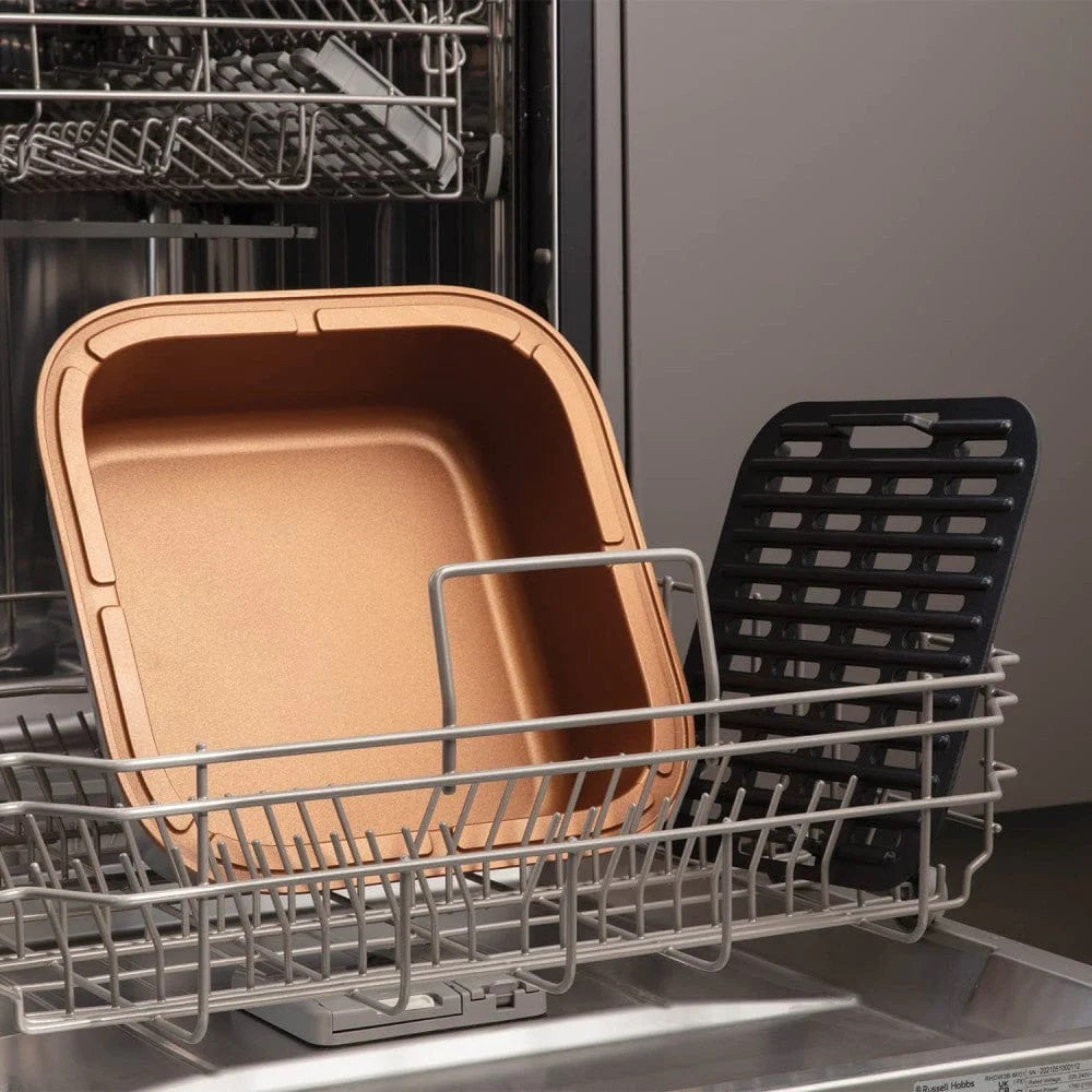 The cooking pot is dishwasher safe^, and the non-stick coating on the dishwasher-safe grill plate is 3x more durable than our standard non-stick grill plate coatings, for added protection and ease of cleaning.