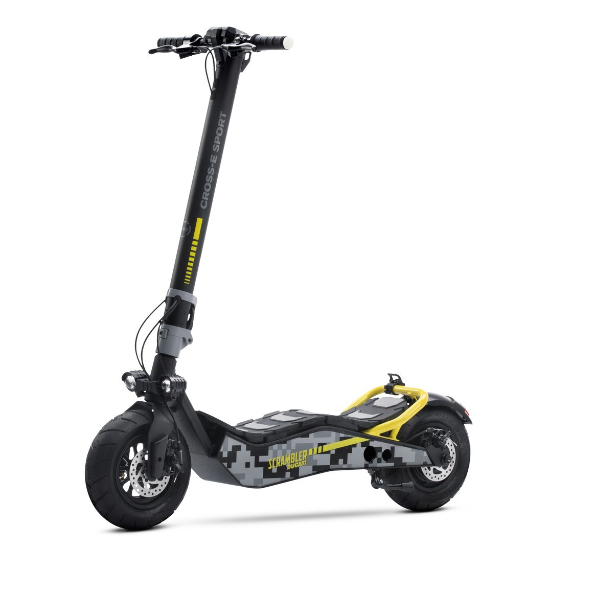 Equipped with an enhanced battery, the CROSS-E SPORT electric scooter, branded Scrambler Ducati, guarantees even higher performance in terms of autonomy, as well as greater responsiveness when started. It is ideal for those who need to move easily around the city and are also looking for an agile vehicle.