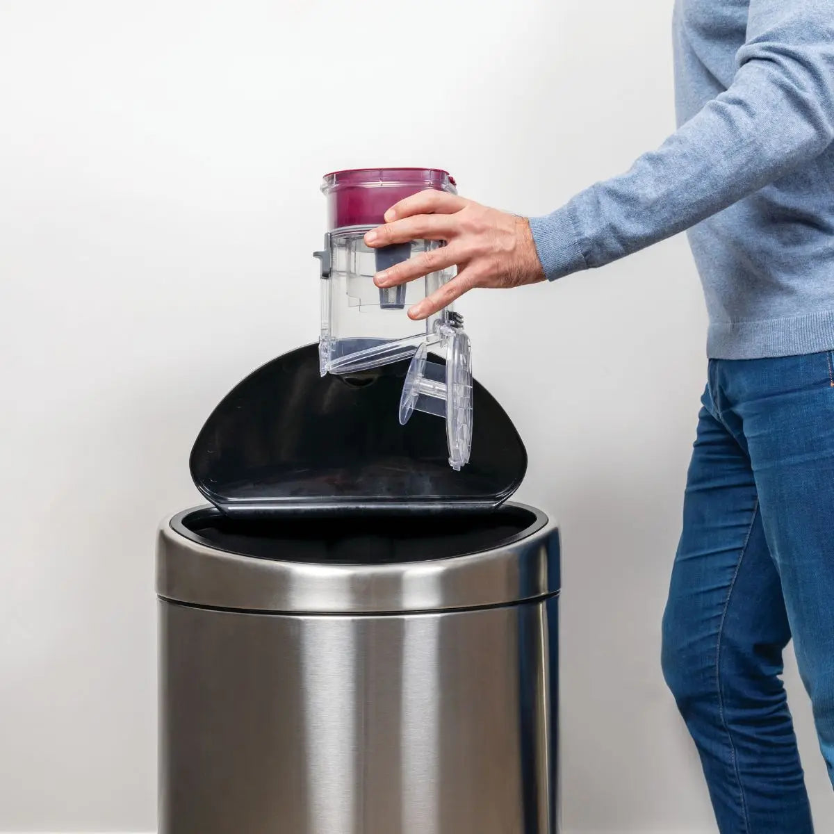 Emptying is a breeze, thanks to the one-touch easy empty dust cup. Easily move around corners and furniture with swivel steering and a slim stick silhouette.