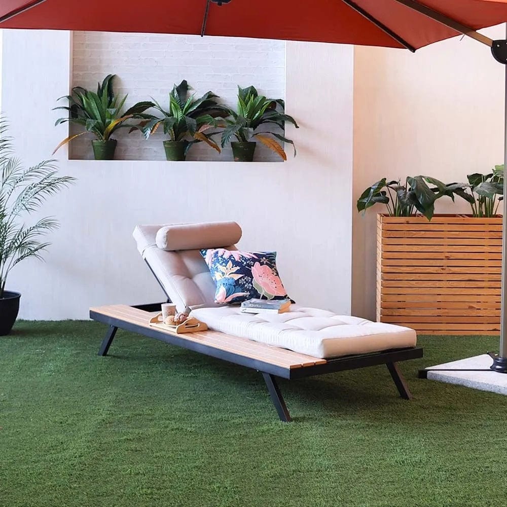 Lounging Excellence: Discover a new level of relaxation with the Sunny Lounger, thoughtfully accompanied by a convenient side table for your ultimate comfort.