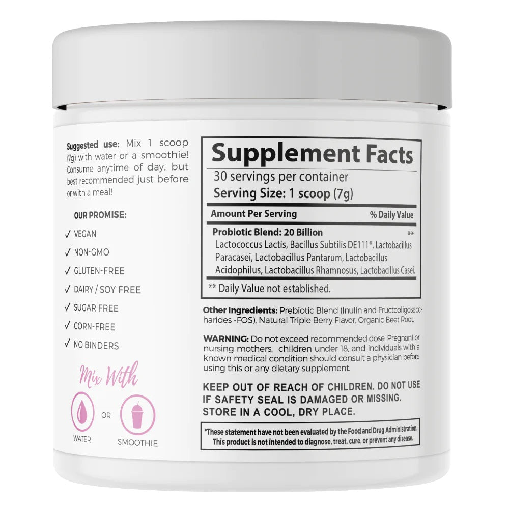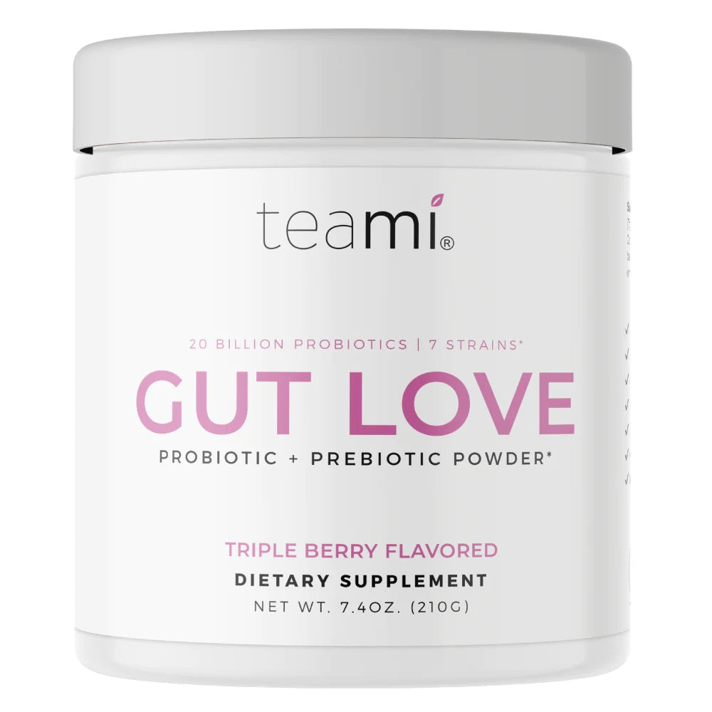 Teami Gut Love is a shelf-stable probiotics + prebiotics supplement to support belly balance, gut health, and overall inner wellness. Probiotics are living microorganisms - known as "beneficial bacteria" - that support regular digestion, feelings of bloat, and promote well-being from the inside out. Stress, lack of nutrition, physical inactivity, and alcohol can throw the gut microbiome out of balance. Adding a daily probiotic prebiotic supplement to your wellness routine is a great way to actively invest in your gut health.