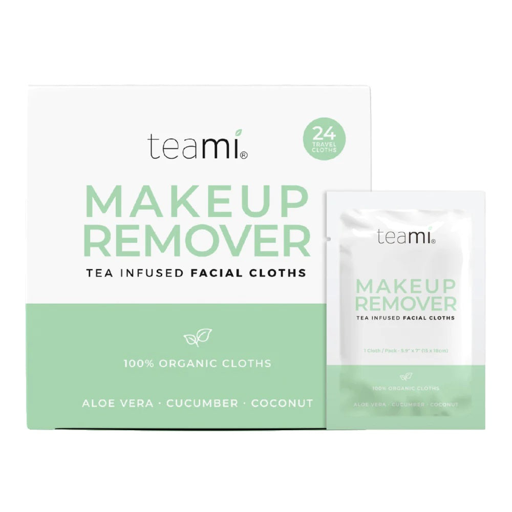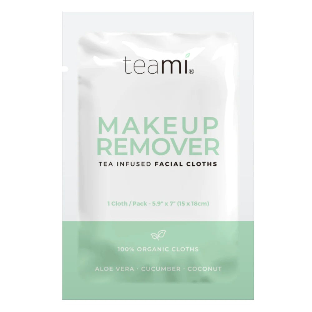 Take off the day with Teami's Organic Makeup Remover Cloths. Naturally cleanse and moisturize your skin on the go with the individually wrapped, travel-sized cloths - perfect for that busy-babe lifestyle! Thoughtfully formulated with hydrating and nourishing, plant-based superfoods, your skin will feel clean, soft, and radiant after each use (no shady ingredients included). Formulated with super ingredients: Aloe Vera - known as a natural moisturizer and bursting with hydrating properties, Aloe Vera has been used for centuries for soothing all skin types; Cucumber Extract - an antioxidant and anti-inflammatory agent, cucumber extract is known for its cooling effect on the skin; Coconut Oil - this oil naturally attracts dirt and buildup to gently clean skin complexion and leave it hydrated, smooth and soft.