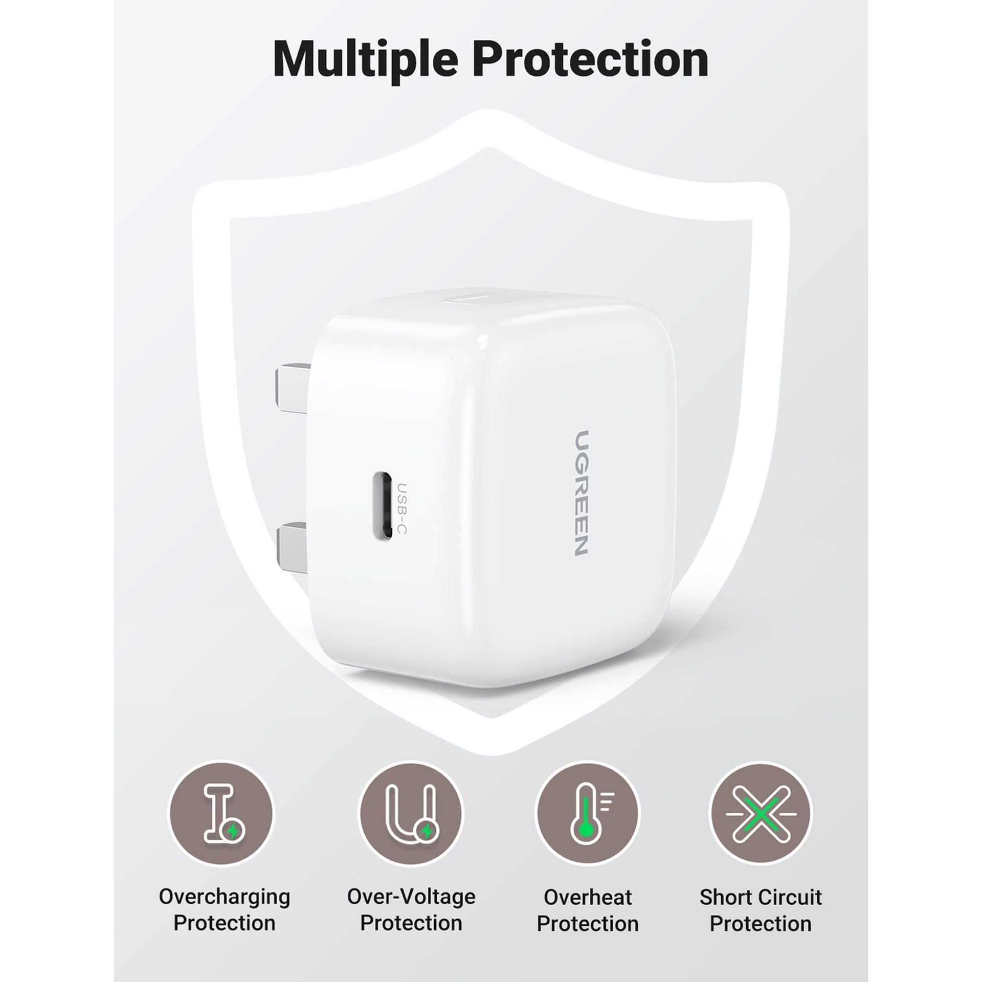 he Ugreen PD USB-C Wall Charger in white is an efficient charging solution for all your devices. With a power output of 30 watts, this charger delivers fast and reliable charging for smartphones, tablets, laptops, and more. Its USB-C port supports Power Delivery (PD) technology, ensuring universal compatibility and rapid charging speeds. The compact and lightweight design makes it ideal for travel, while the foldable plug allows for convenient storage. Whether you are at home, in the office, or on the go, the Ugreen PD USB-C Wall Charger ensures that your devices stay powered up whenever you need them.