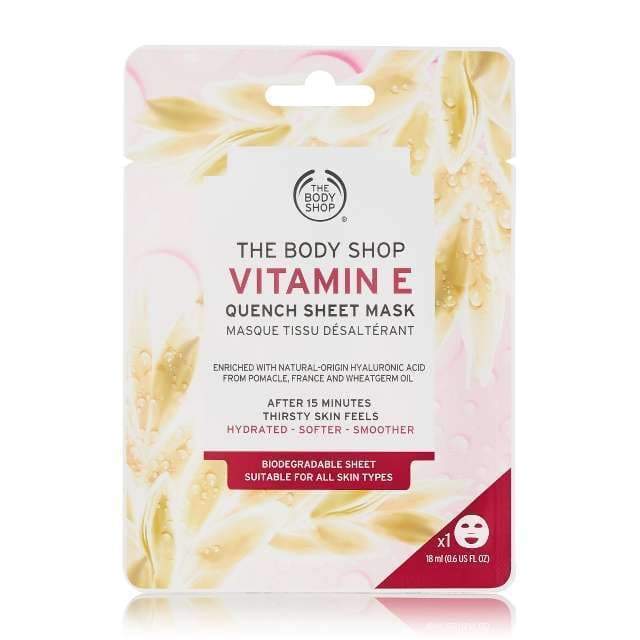 Hydrate thirsty skin in just 15 minutes with our Vitamin E Quench Sheet Mask. Enriched with Community Trade organic aloe vera, natural-origin hyaluronic acid and wheatgerm oil, this mask locks in 24hr hydration and leaves skin feeling instantly softer, smoother and re-plumped with moisture.