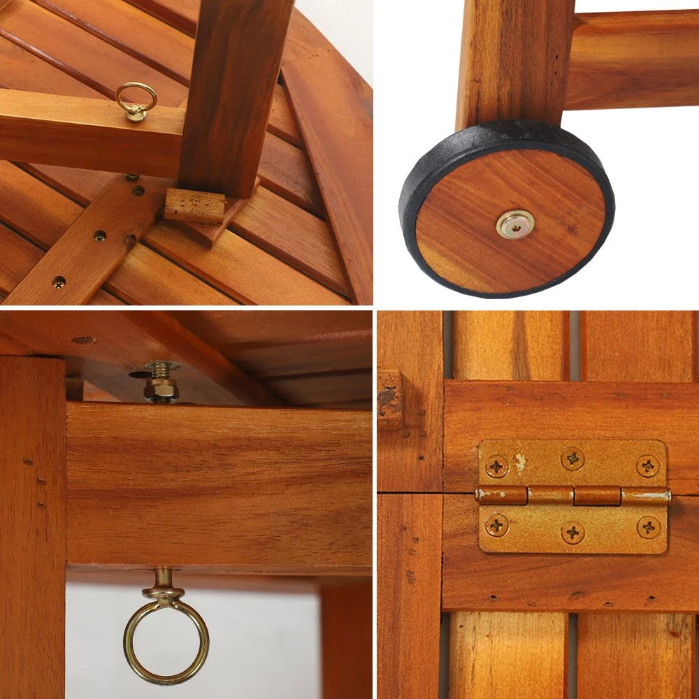 Introducing the Yatai 7-piece patio bistro set, made with durable acacia wood and built-in movable tyres for easy transport. Enjoy outdoor dining with this foldable, space-saving table and chairs set. Expertly crafted for long-term use and practical benefits.