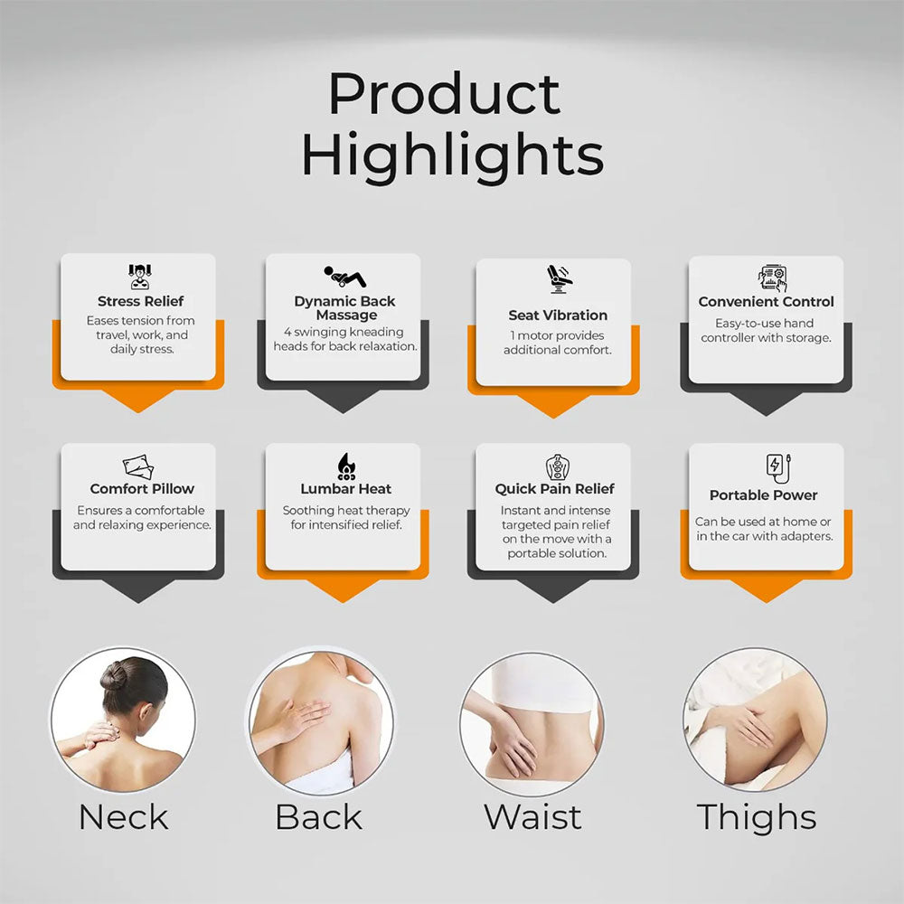 The Lumboluxe Mobile Seat Massager is specifically designed for individuals suffering from back pain. Its targeted vibration technology effectively soothes sore muscles, providing instant pain relief. Whether you're on a long journey, at home or working in the office the Lumboluxe is the perfect relaxing companion, allowing you to enjoy a massage anytime, anywhere and stay refreshed.