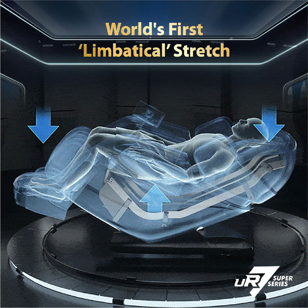 The UR-7 Super Series is the world’s first massage chair featuring Limbatical Stretch technology. This cutting-edge innovation provides a full-body massage experience that melts away tension and pain from your neck, shoulders, spine, calves and feet while soothing your waist and hips. The UR-7 Super Series offers a world of premium comfort and relaxation like never before.