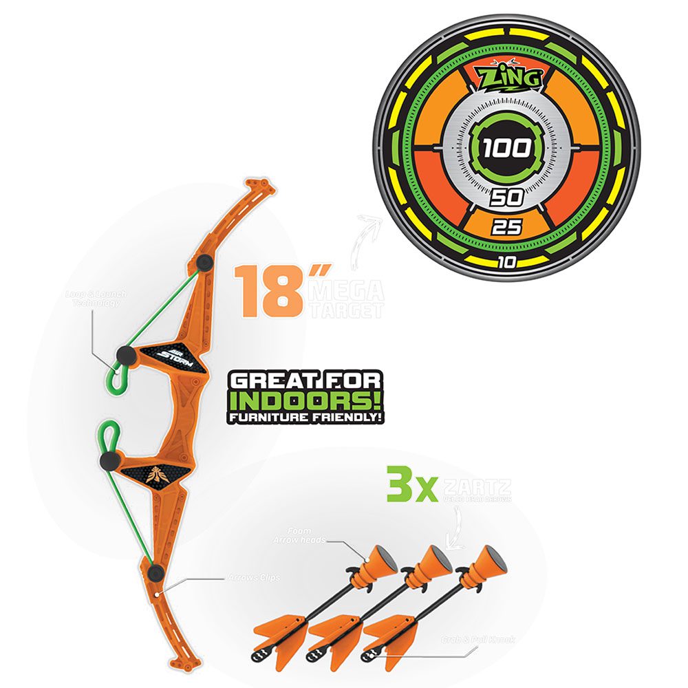 The **Air Storm Bullz Eye Bow + Target** is a high-performance toy archery set designed for outdoor play. It includes a specially crafted bow that launches soft-foam arrows with precision, offering both safety and excitement for young archers. The set comes with a target, helping users to practice accuracy and improve their aim. The arrows are designed to travel long distances and feature suction cup tips, making them safe to use indoors or outdoors without causing damage. This toy promotes active play, hand-eye coordination, and provides hours of fun for kids and teens.