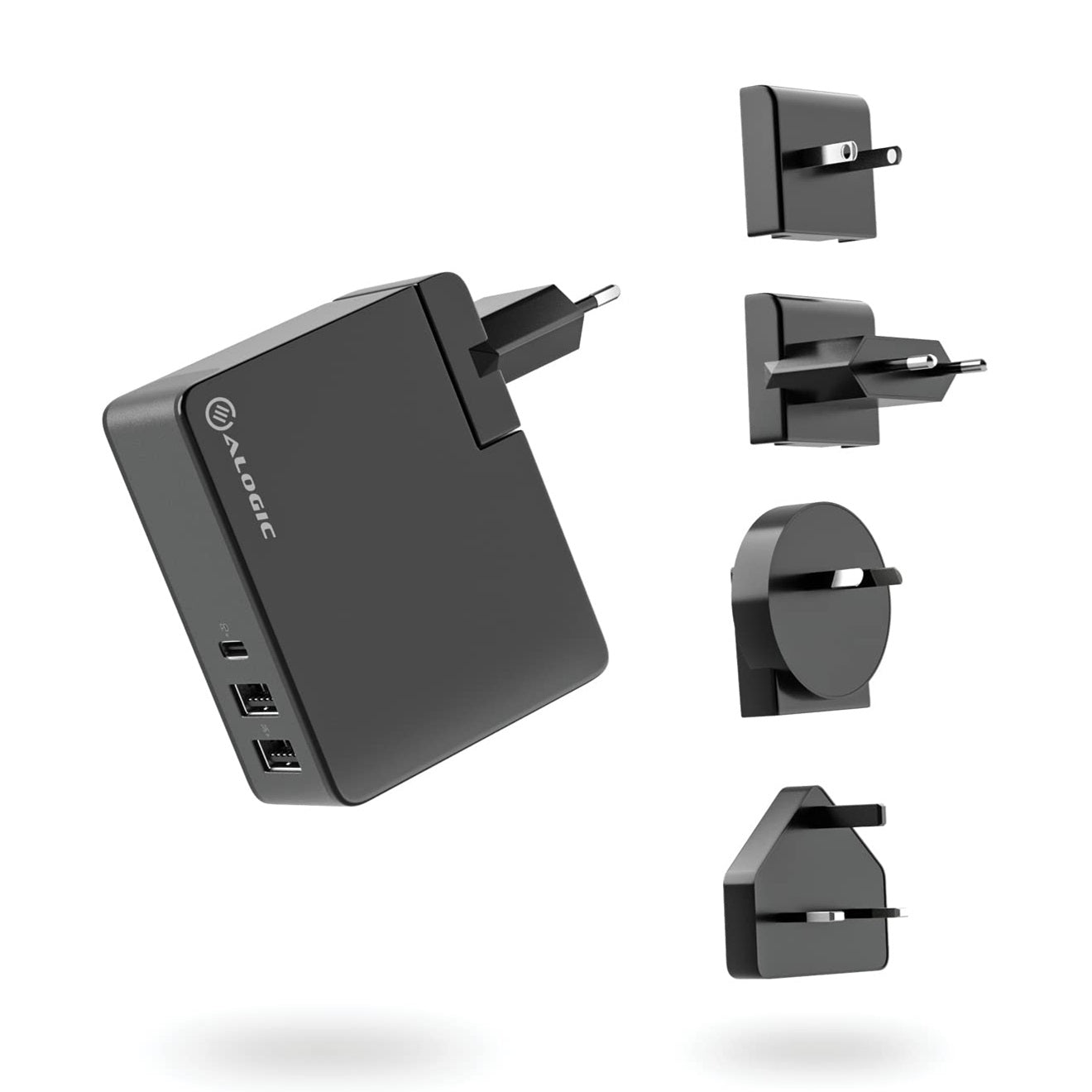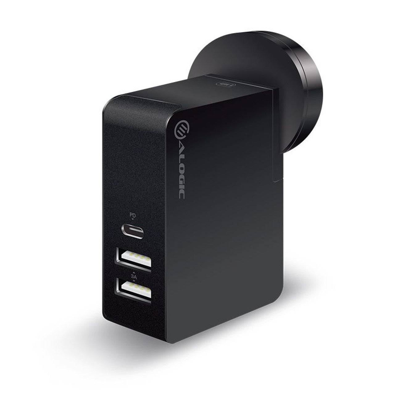 Alogic 3 Port USB-C & Dual USB-A Travel Power Adapter - Black