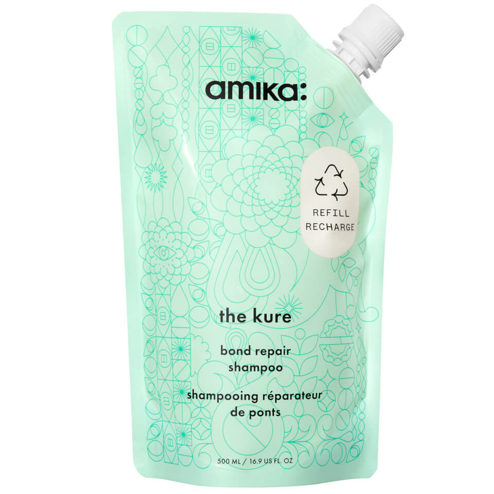 A bond repair shampoo that is clinically shown to repair and strengthen damaged strands caused by everyday stressors, heat, and chemical treatments. The packaging uses less materials and reduces carbon emissions by 98.4% when used for 1 year. amika is a friend to the planet and by choosing this refill pouch, you will be too.