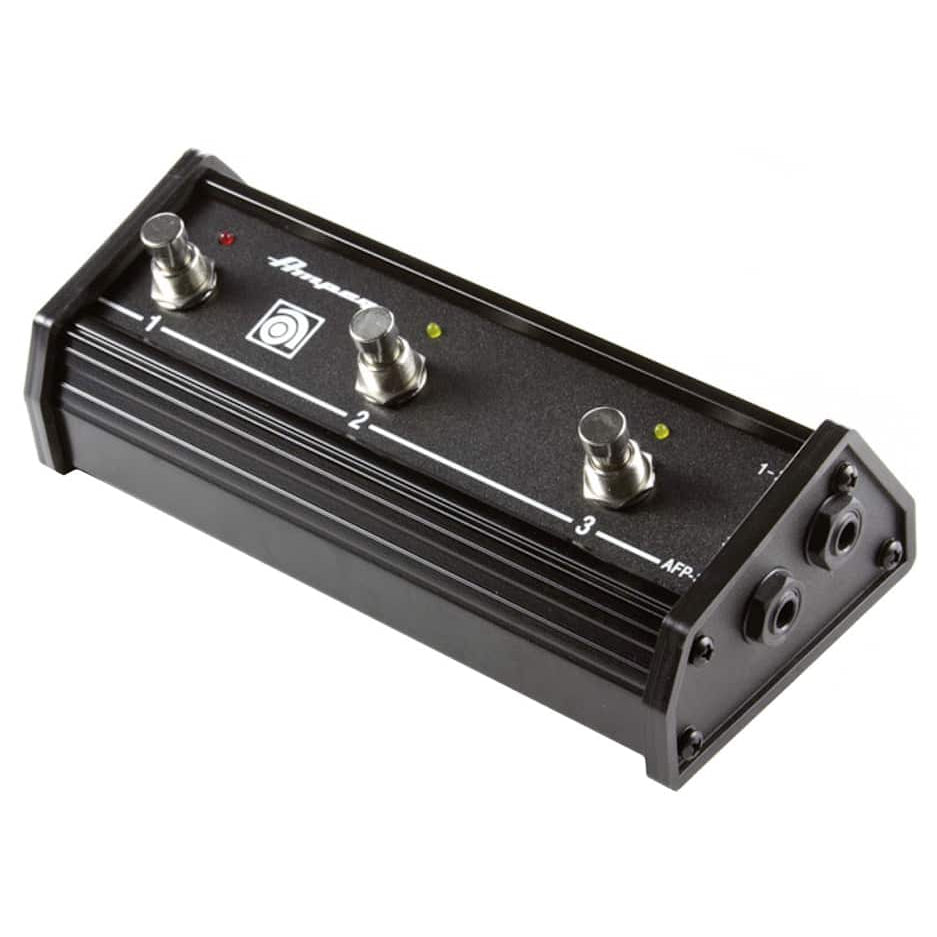 The Ampeg AFP3 3-Button Footswitch for SVT4-Pro and other amplifiers, is a three-button foot-controlled switcher for turning effects and equalization on or off, and for muting the amplifier, remotely, from the stage or studio floor. The pedal buttons mirror the actual amp switching buttons of the front panel of the amplifier face plate. It plugs into the “Footswitch” jack on the amplifier. Footswitch for SVT4-Pro and other amplifiers 3-Button foot controlled switcher for turning effects and EQ on or off, and for muting