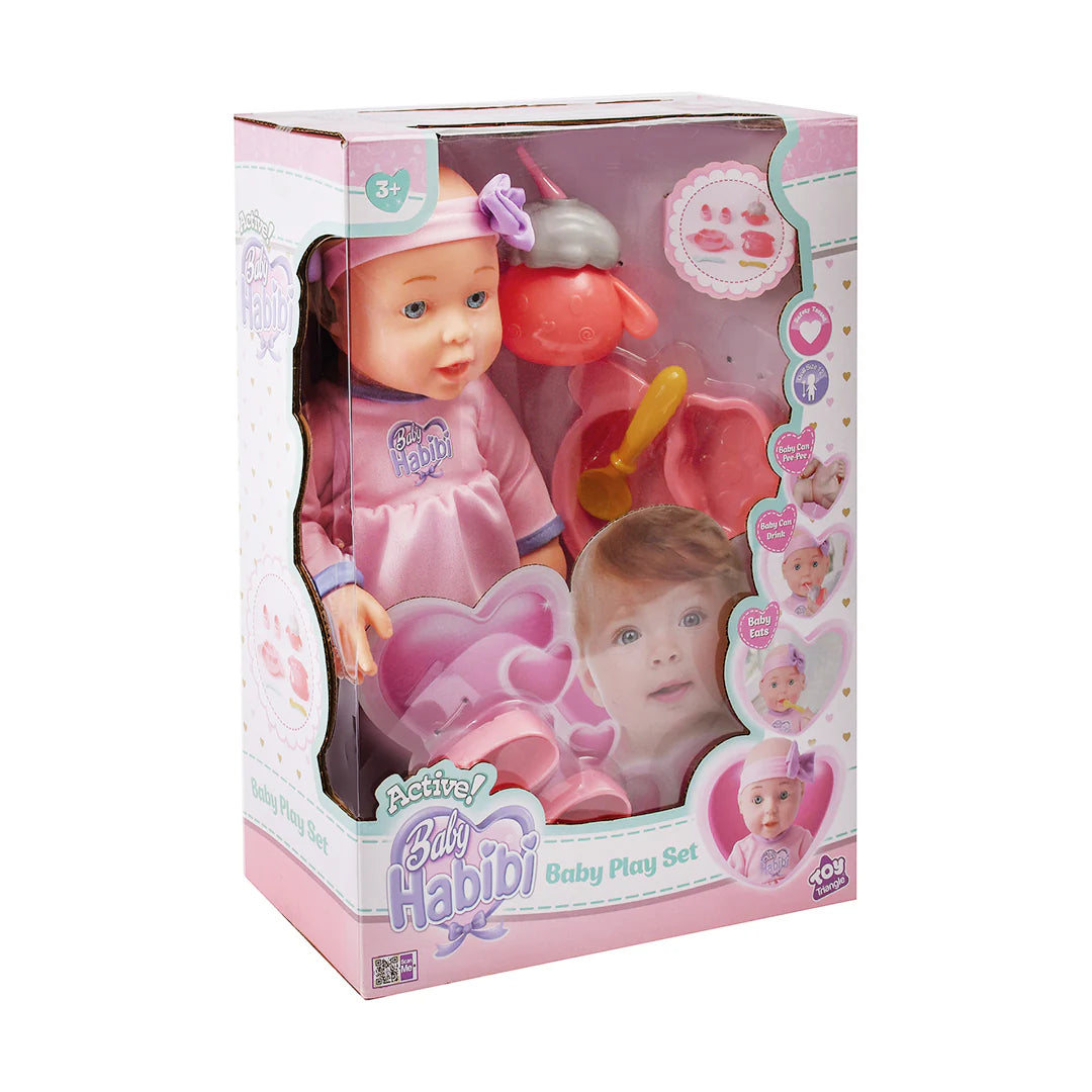 Introducing the Baby Habibi 12-inch Doll Baby Playset, where your child's nurturing instincts come to life! This realistic baby doll boasts lifelike features and interactive abilities, allowing it to eat, drink, and even use the potty. Its soft body is perfect for hugging and cuddling, providing endless comfort for your little one. The set includes a range of accessories like a bottle, plate, spoon, and potty, enhancing the pretend play experience. Crafted with high-quality materials, this doll ensures durability and safety, making it suitable for children aged 3 years and older. Encourage your child's imagination and foster their caregiving skills with this delightful Baby Habibi doll playset.