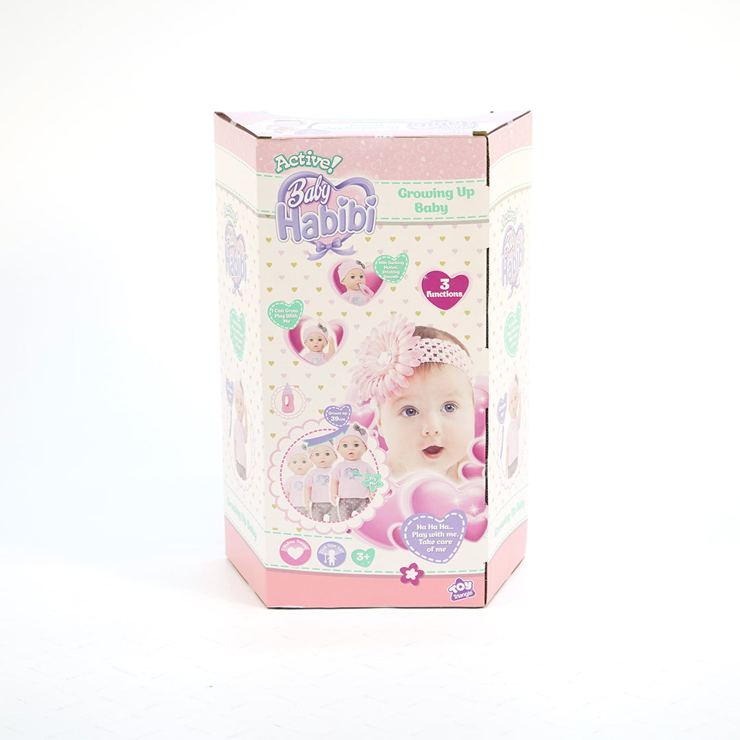 Baby Habibi 14inch Doll Growing Up Baby is the perfect companion for nurturing and imaginative play. With its lifelike design, realistic facial features, and soft body, this doll is sure to capture the hearts of children. Watch as the doll grows up to 39 cm and then shrinks back down, providing a unique and interactive experience. It can even drink milk with a sucking motion and sound, adding a touch of realism to playtime. Made of high-quality materials for durability, this doll comes with a variety of accessories for endless hours of fun. Let your child's creativity flourish with Baby Habibi 14inch Doll Growing Up Baby.