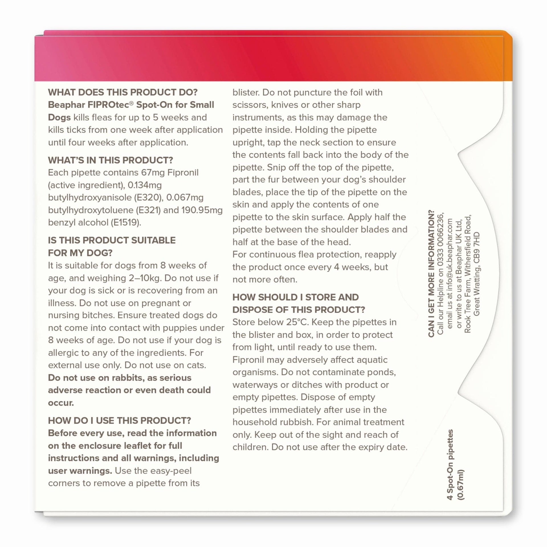 Beaphar Pet Supplies Beaphar Fiprotec for Small Dog - 4 Pipettes