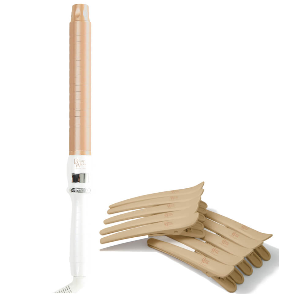 Create Hollywood-inspired waves or flowing, retro curls with ease using the Beauty Works Professional Styler and Gold Sectioning Clips Set.