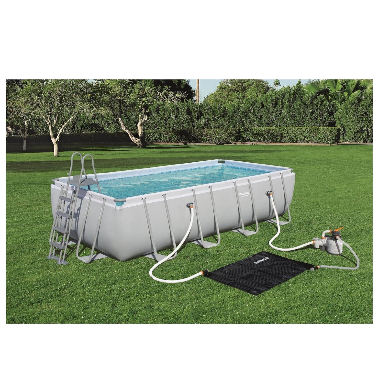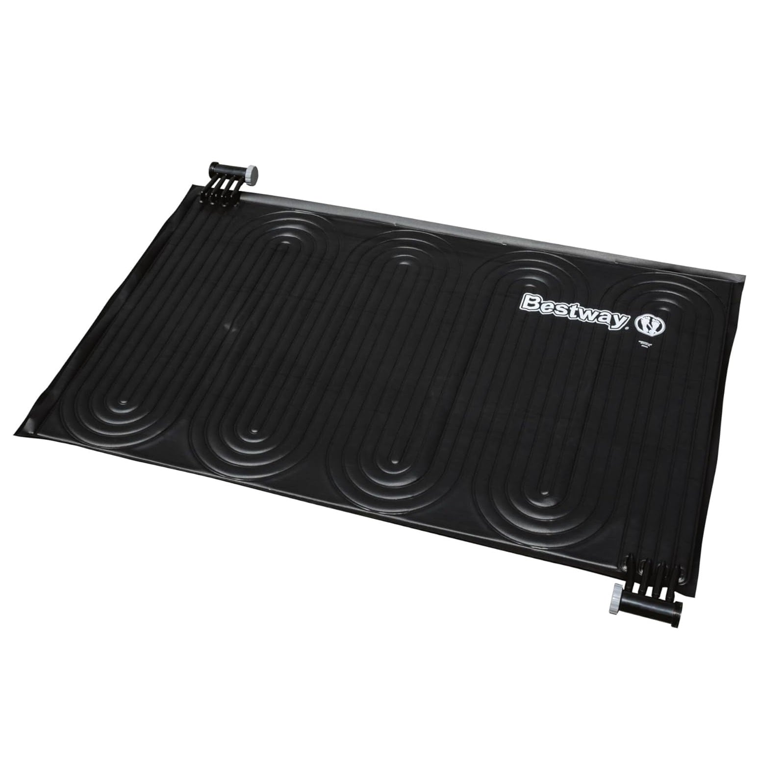 The Clean Sun Powered Pool Pad by Bestway® provides an economical and environmentally friendly way to heat swimming pool water by harnessing the energy of the sun. It is easy to set up with included adaptors compatible with 3.2 cm and 3.8 cm hoses. It is compatible with 2500 gal filter pumps and 2000 gal sand filters and below and it works with all above ground pools. The Pad uses solar power to increase swimming pool water temperatures by approximately 3 ~ 5° C (5 ~ 9° F) depending on the weather conditions. With a heating area of 1.46 square meters (15.72 square feet), it can be used in multiples to work together for different size pools.
