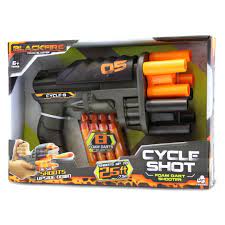 - The Blackfire Cycle Shot is an exciting toy gun that combines high-performance action with innovative design. The Cycle Shot features a unique, rotating barrel that allows for rapid-fire action and intense target shooting games.