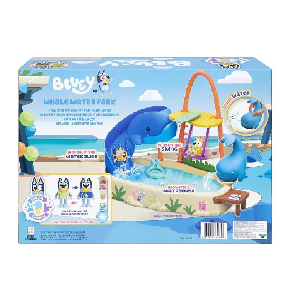Cool down with Bluey at the Bluey Whale Water Park Playset! Kids will love to splash and play as they fill their Whale Water Park with water. There are so many ways to play at the Whale Water Park. Slide down the whale slide, play on the swing, and get squirted by the whale as Bluey splashes about in the pool! Pop Bluey's goggles on and jump into a whale-shaped floatie and float about in the water. At 3' (7.6 cm) tall, Bluey is the perfect size for little hands and has articulated arms and legs for play and posing. Children will love using this fun-filled playset to recreate some of the most memorable moments from the show and create their adventures.