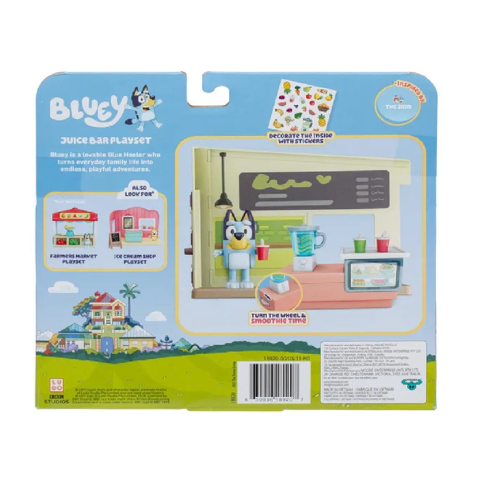 - Bring the fun and imaginative play of Bluey home with the Bluey Juice Bar Playset.