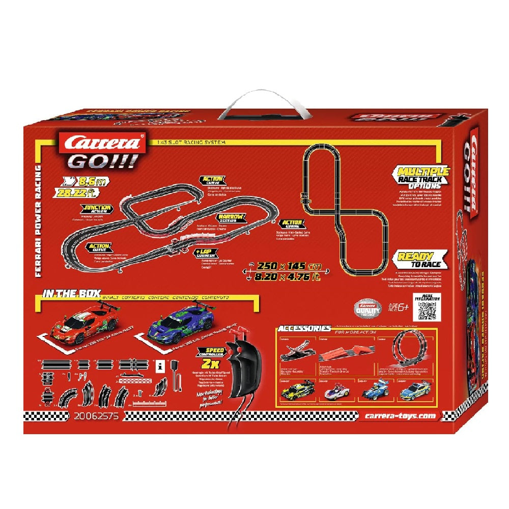 Feel the adrenaline of high-speed racing with the Carrera GO! Ferrari Power Racing slot car set! Designed for young racing fans and motorsport enthusiasts, this action-packed set brings the legendary power and style of Ferrari race cars straight into your home.