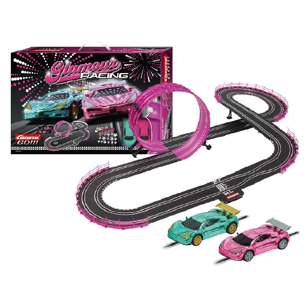 Race in style with the Carrera GO! Glamour Racing slot car set, designed to bring fast-paced excitement and fashionable flair to your racing adventures. Perfect for young racers, this vibrant set combines high-speed action with eye-catching design, making every race fun and competitive.