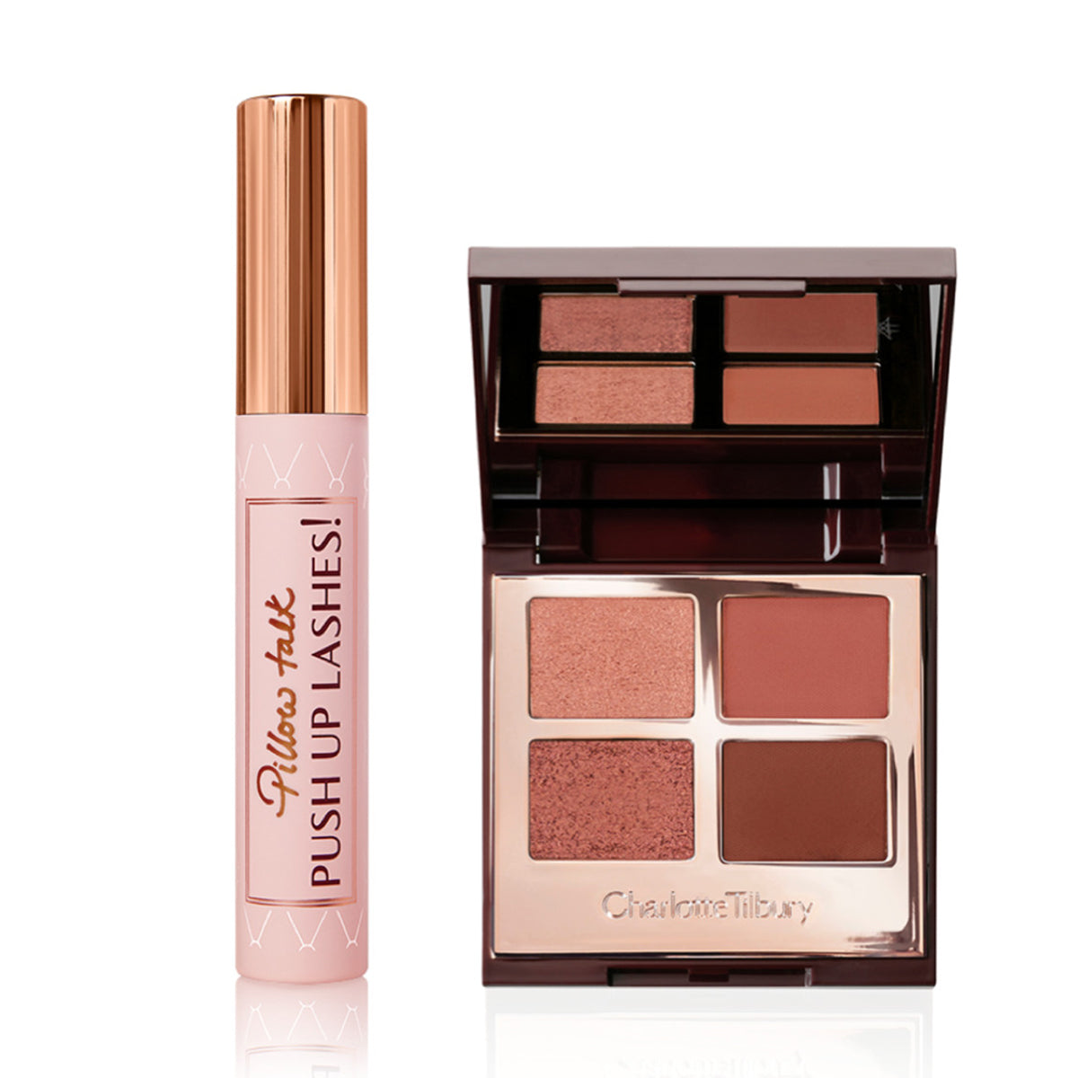 Featuring my Pillow Talk Push Up Lashes! mascara for instant LENGTH, WEIGHTLESS VOLUME, STRETCH and a 24-HOUR VERTICAL LIFT EFFECT and my ICONIC Luxury Palette in Pillow Talk to create a UNIVERSALLY-FLATTERING, MESMERISING eye look! Make your eyes look bigger, brighter and more awake with the perfect nude-pink, romantic Pillow Talk gaze!