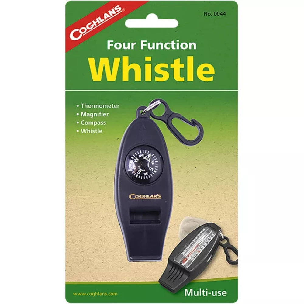 Coghlan's Four Function Whistle is a useful multi-function device that is excellent for reading a map and orienteering. It features four key functions that are helpful in navigating the outdoors: a thermometer, magnifier, compass and whistle. The compass will help you find your direction, the built-in whistle is loud enough to alert others of your presence, the thermometer accurately tells the temperature and the magnifier is useful for reading maps. The Four Function Whistle also includes a convenient clip to attach to a zipper, belt, lanyard or backpack. Mixed colors: black, blaze orange and lime.