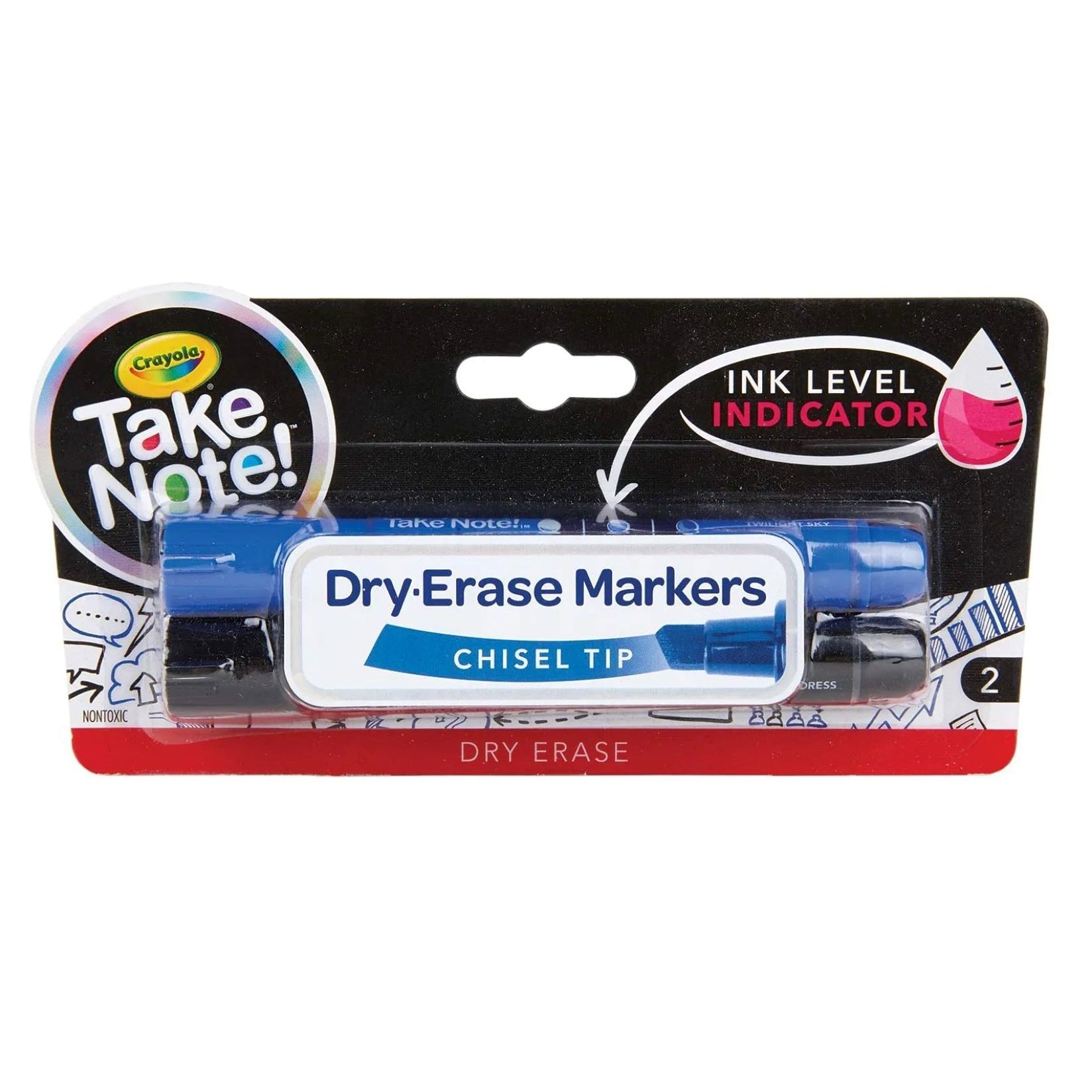 Crayola Take Note Fine Tip Dry Erase Markers are quick to dry but easy to erase! These fine line markers are perfect for precise, consistent lines and feature an ink level indicator so you always know when it's time to restock Bring boldness to your whiteboard messages with 4 vibrant colors, including green, blue, red, and black markers Fine Point dry erase markers bring out the details, making them the perfect addition to office or teacher supplies With a safe and non-toxic formula, teens and adults can use these low odor dry erase markers in class, at the office, or just for fun! One 4-ct pack of Crayola Take Note Fine Tip Dry Erase Markers Whiteboard markers that feature an ink level indicator on the side of the barrel to let you know when it's time to restock.
