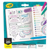 CRAYOLA COLORS: Gel Pen colors include Berry, Orange, Green, Jade, Light Blue, Indigo, Dark Blue, Lilac, Raspberry, Black, Amethyst Purple, Yellow Green, Marigold, and Red.